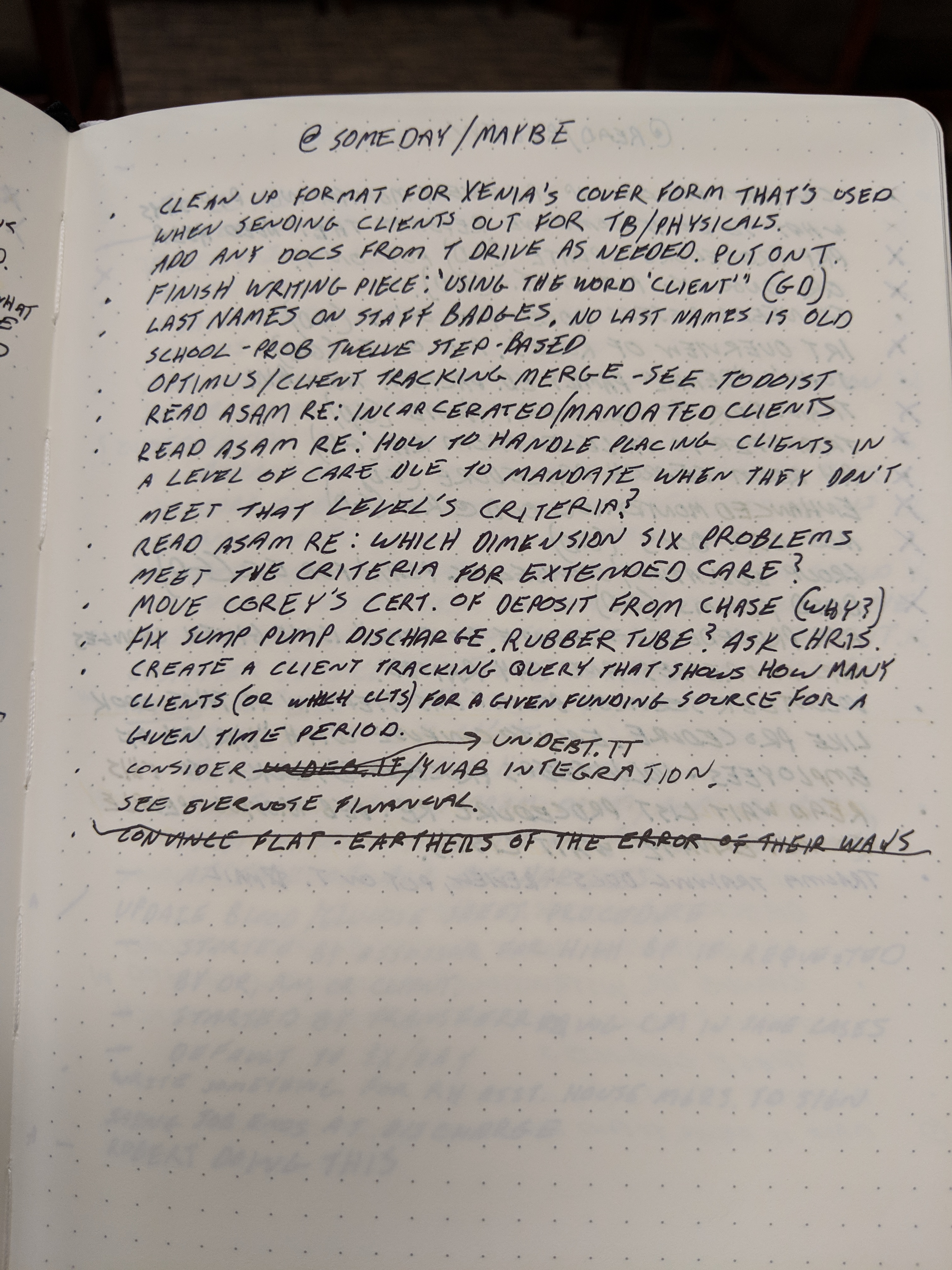 Ever find yourself reluctant to cross off something from your monthly tasks log that you’ve been migrating for more than a few months? Maybe you’re not going to get to it anytime soon but you might get to it someday, maybe.