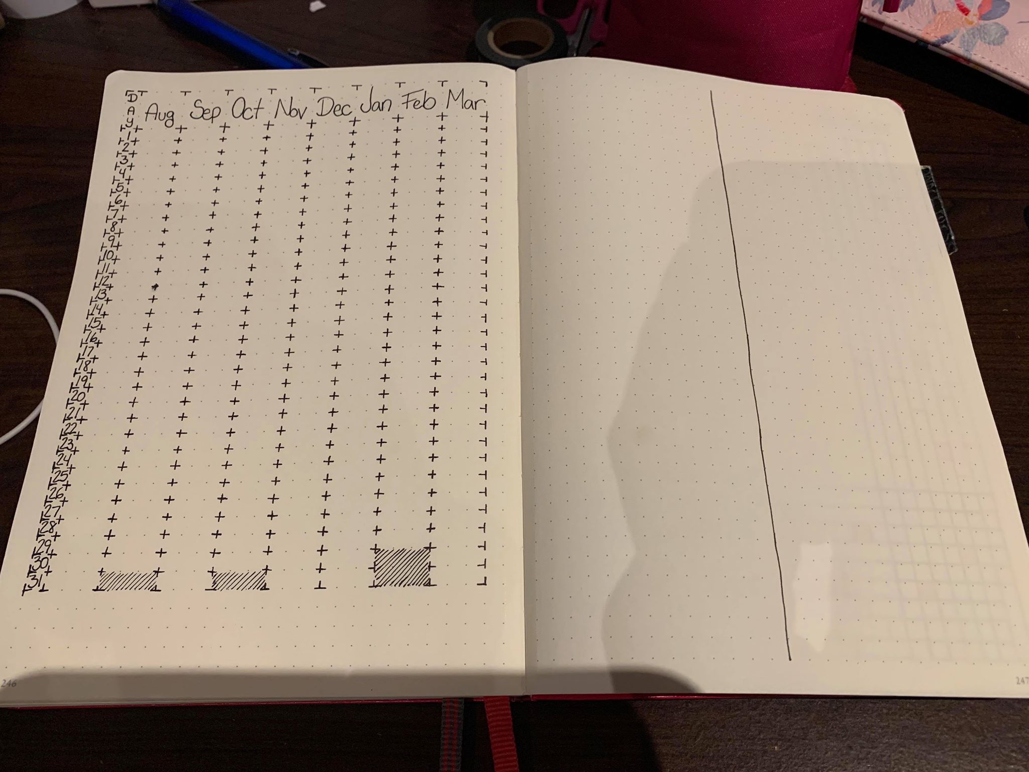 I’m looking forward to my next journal since I definitely want to use Thalia’s FutureFrank for my next Future Log. Lately I’ve been trying to drawer fewer lines in my spreads, and I think I want to have a four-page future log. So here’s my first stab at my own FutureFrank…