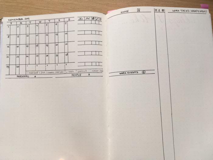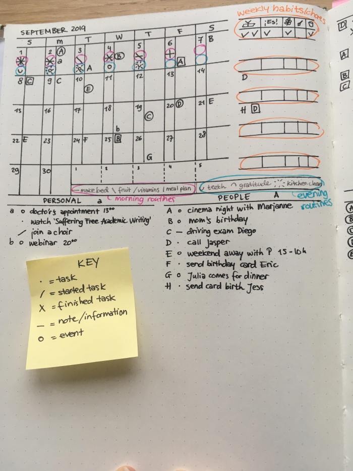 Hi! Brian encouraged me to write about my Frankenlog-hybrid monthly overview, and specifically, how I deal with (work) tasks that don’t have a specific due date.