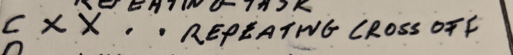 If you’re not a fan of moving things from Frankenlog to your dailies, you can mark things as complete right there in the task list. If you want to mark a repeating task as completed, consider using more than one bullet when writing that task so you have a place to mark completions, like this: