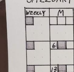 On the left side of the calendar there is a column to be used for tracking weekly habits and tasks. These spaces can be used for scheduling things that have to be done during that week, but not on a specific day. Each of these represents the week on the calendar to their right. In the example above, the first weekly box is for the week of Spizzuary 1st thru the 5th, the second one is for the week of the 6th thru the 12th, and so on.